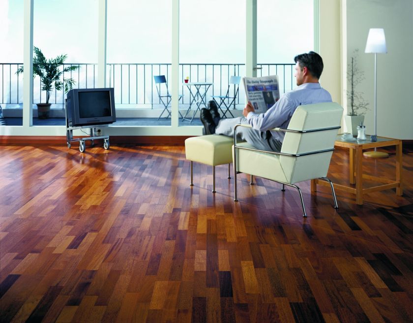 • Alternativ kann Stabparkett auf Estrich oder anderen festen Untergründen vollflächig verklebt werden. So entstehen extrem langlebige Böden, die sich bei Bedarf immer wieder abschleifen und erneuern lassen.